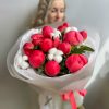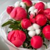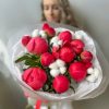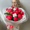 Букет из 11 пионов и хлопка