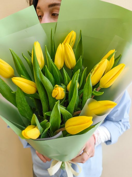 Букет из 15 жёлтых тюльпанов