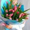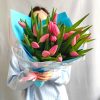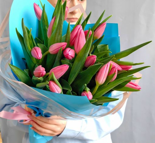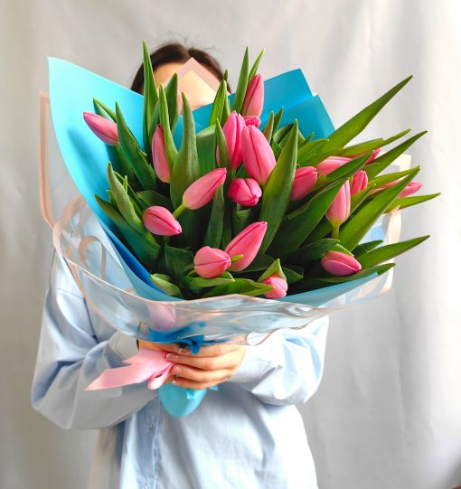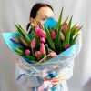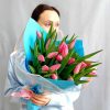 Букет из 21 розового тюльпана в стильной упаковке🌷