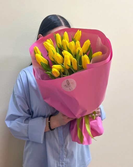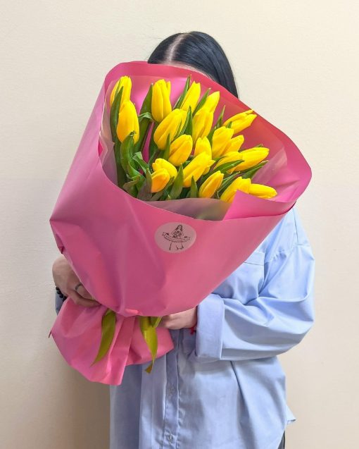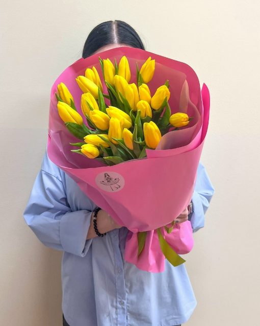 Букет из 21 жёлтого тюльпана