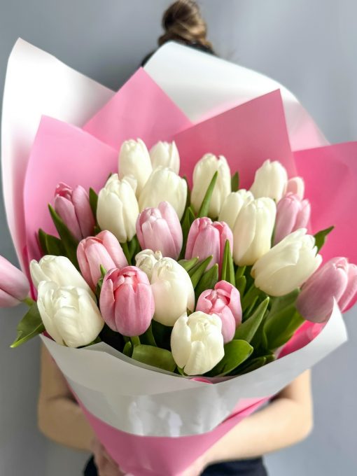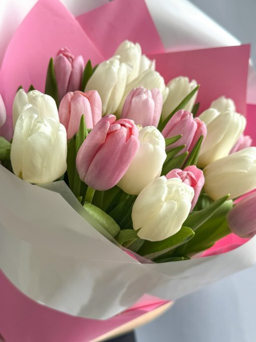 Букет из 25 бело-розовых тюльпанов🌷
