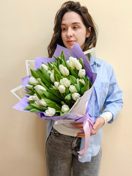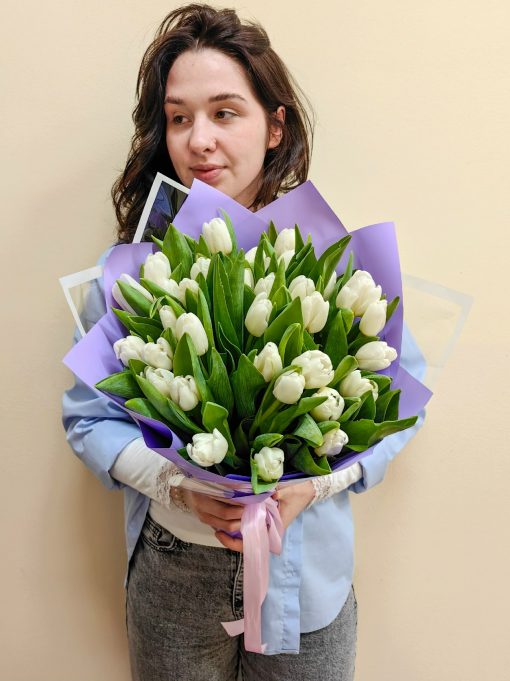 Букет из 35 белых тюльпанов