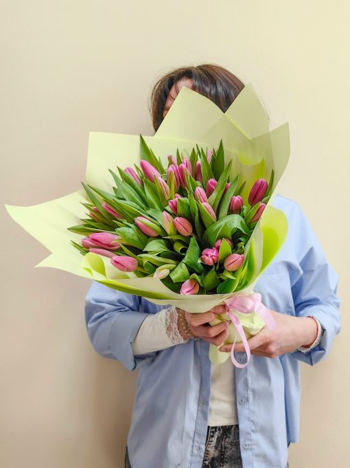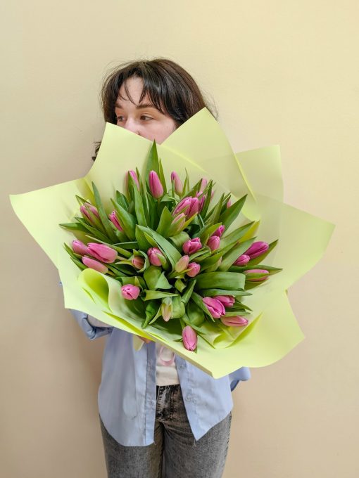 35 розовых тюльпанов