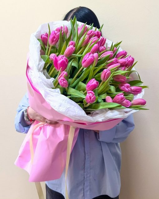 Букет из 45 розовых тюльпанов