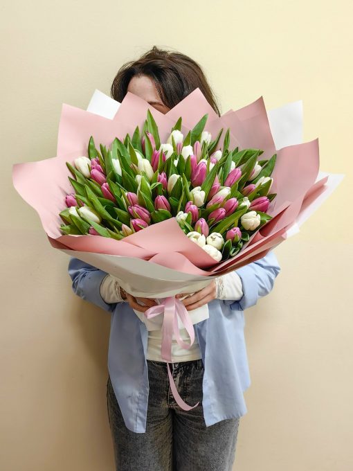 Букет из 75 тюльпанов микс