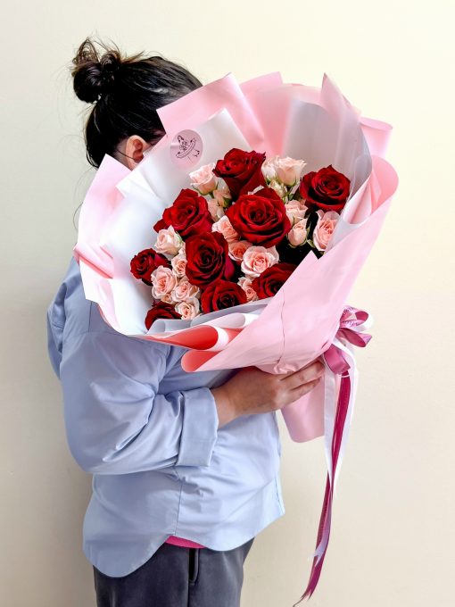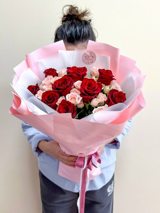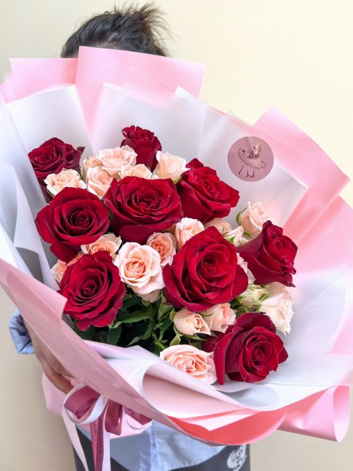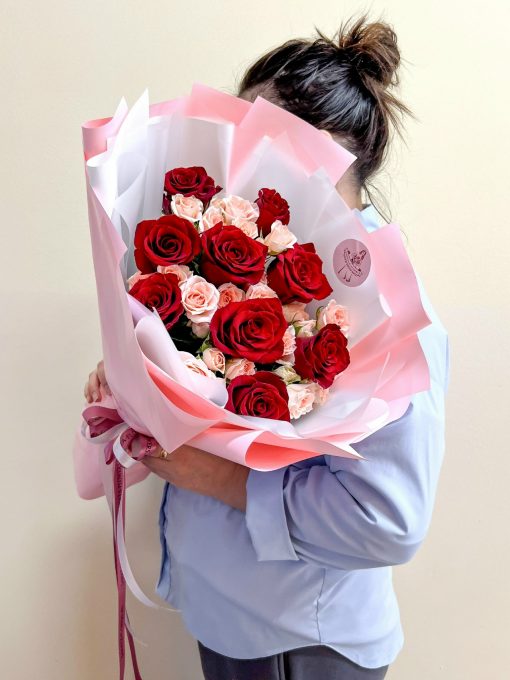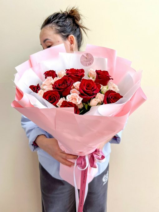 Состав: Роза сортовая – 9шт. Роза кустовая – 6 шт.