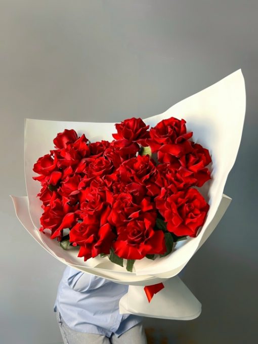 Букет из 25 шикарных французских роз😍🌹 Ширина 65 см, высота 50 см В подарок: – Дизайнерская упаковка – Инструкция по уходу – Средство для продления жизни цветов 2 шт 🌷 Экспресс-доставка 🌷 Кешбэк от суммы заказа 🌷 Открытка в подарок 🌷 Фотоотчет перед отправкой