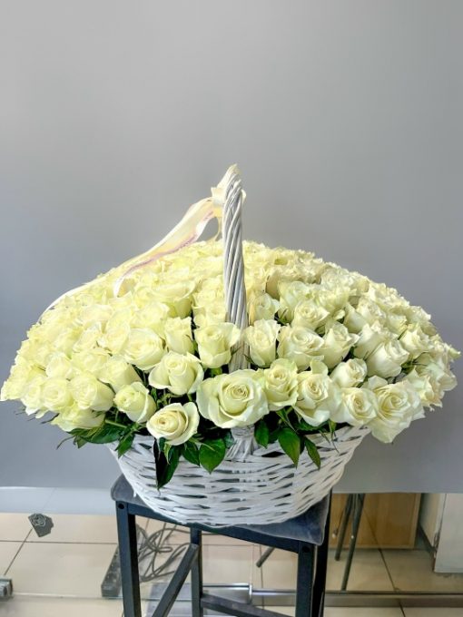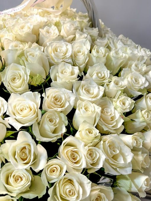 Корзина из 201 белой розы 40 см