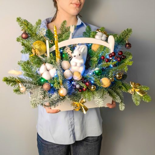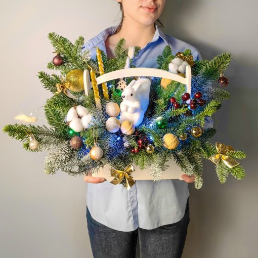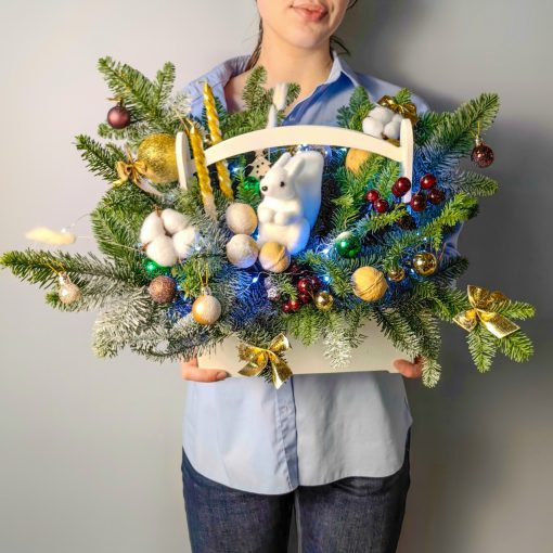 Новогодняя композиция с елью нобилис “Беличье счастье”