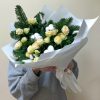 Букет из живой ели и кустовых роз