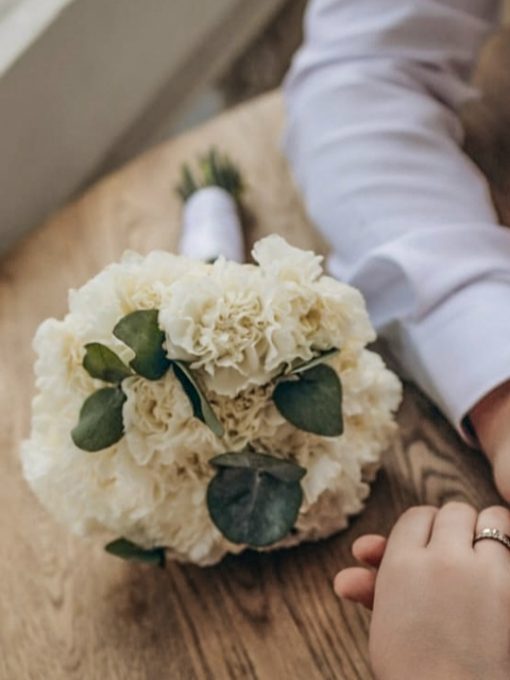 Свадебный букет из диантусов с эвкалиптом🕊🌿 В составе: Диантусы 15 шт Эвкалипт 2 шт Ширина 20-23 см В подарок: – Инструкция по уходу – Средство для продления жизни цветов 2 шт 🌷 Экспресс-доставка 🌷 Кешбэк от суммы заказа 🌷 Открытка в подарок 🌷 Фотоотчет перед отправкой